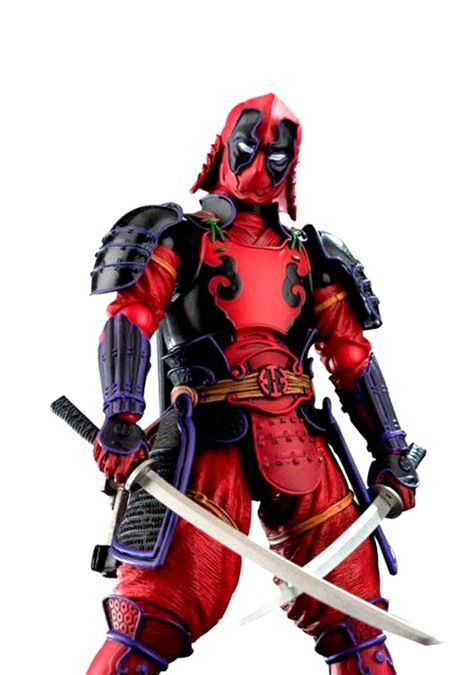 As linhas Meisho Manga & Meisho Movie Realization da Bandai, trazem figuras articuladas de ícones da cultura Pop dos quadrinhos e TV ocidentais, para o formato oriental de armaduras Samurai. Com design criado por Takayuki Takeya (designer da série Kamen Rider). Deadpool foi criado por Fabian Nicieza e Rob Liefeld em 1991, apelidado de o "Mercenário Tagarela" Wade Wilson surgiu como um tipo de paródia do vilão também mercenário da DC "Slade Wilson", the Deathstroke (o Exterminador no Brasil), mas os escritores Joe Kelly e Ed McGuinness a partir de 1998 deram o estilo próprio, cheio de humor negro, ácido e referências satíricas que fizeram do personagem o grande sucesso que é. Wade tinha um câncer incurável, por isso se submeteu a um tratamento como cobaia do governo canadense onde injetaram nele, artificialmente, o fator de cura de Wolverine. Como resultado ele se curou do câncer, e ganhou um fator de cura que vai além ao de Wolverine, seu corpo também pode se auto-regenerar.